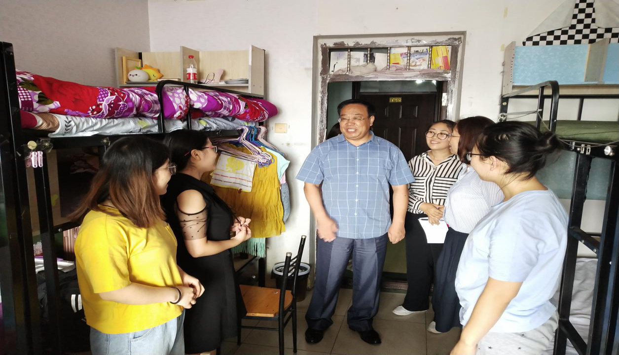 (通讯员:岳子琪)2019年9月6日,bat365在线中国官网登录入口党总支书记朱兴国、副院长王晓光、辅导员宋海娇一行来到南湖校区学生宿舍,关怀慰问2019级全体新生。