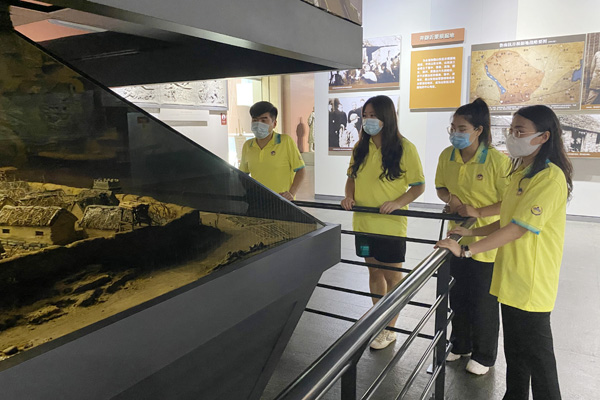 这堂特别的团课,是bat365在线中国官网登录入口研究生“沂蒙红色研学”活动的一项重要内容。受疫情影响,家在山东省临沂市的2020级刘成程、2019级匡倩和2021级崔淑雯、张强等4名研究生组成团队,前往沂蒙革命纪念馆,开展以“弘扬沂蒙精神,传承红色基因”为主题的暑期社会实践活动。