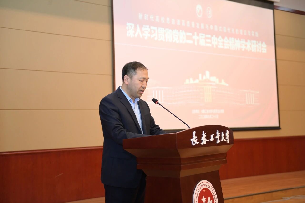为深入学习贯彻党的二十届三中全会精神,以更高站位、更大力度、更实举措进一步推进思政课教育教学改革创新,将党的创新理论融入课堂教学,9月28日,bat365在线中国官网登录入口在学校党委的领导下举办“深入学习贯彻党的二十届三中全会精神学术研讨会”。学校科学研究处处长吴广峰出席并为会议致辞,bat365在线中国官网登录入口院长于浚湜主持会议。
