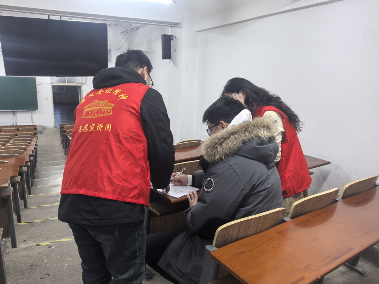 宣讲团始终将实地调研与理论宣讲有机结合,通过开展“红色精神赋能基层”问卷调查,走访大学生、社区居民等群体,精准把握其认知维度,不断完善宣讲方案,结合调研结果,创新打造“情景宣讲+立体传播”模式,精心制作“故事共情+理论串讲”课件,“因人施讲”地传播给听众。