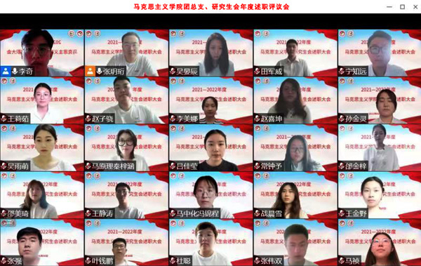 本网讯(通讯员 张伟双 张强)为全面贯彻党的十九大和十九届历次全会精神,深入学习贯彻习近平总书记在庆祝中国共产主义青年团成立100周年大会上的重要讲话精神,持续深化学生会组织改革,进一步规范研究生会述职评议工作,按照学校要求,6月30日,bat365在线中国官网登录入口研究生会通过线上方式召开2021—2022年度述职评议会。学院党委副书记王权出席会议。