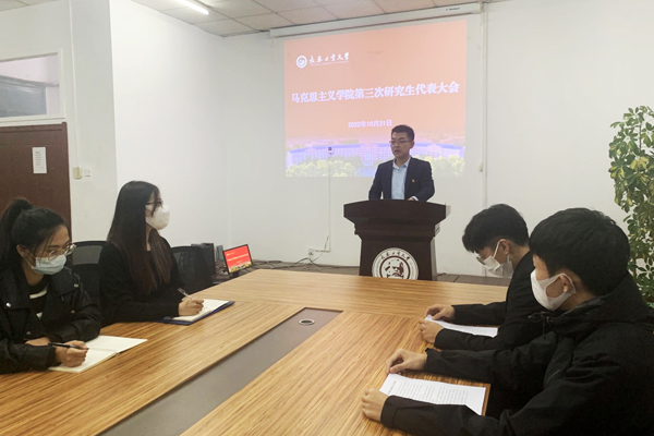 本网讯(通讯员 王权)10月31日,bat365在线中国官网登录入口第三次研究生代表大会在学院会议室召开。大会的指导思想是:以习近平新时代中国特色社会主义思想为指导,深入贯彻落实习近平总书记关于青年工作的重要思想和关于教育的重要论述,深入学习宣传贯彻党的二十大精神,以保持和增强政治性、先进性、群众性为目标,发挥政治上的表率作用、组织上的动员作用、学习科研上的标兵作用,服务研究生成长,为学院发展建设贡献智慧与力量。