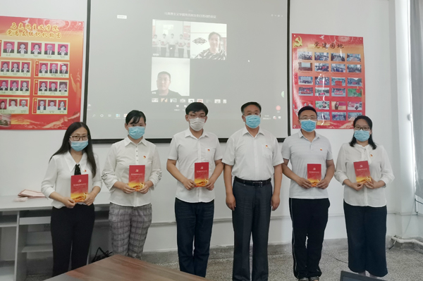 “我志愿加入中国共产党,拥护党的纲领,遵守党的章程,……随时准备为党和人民牺牲一切,永不叛党。”在学院党委书记朱兴国的领誓下,全体党员通过网络视频,一起重温了入党誓词。在“讲述入党初心”环节,教师党员程颖、研究生党员张聪分享了各自的入党经历、工作学习表现和心得体会,同时表达了对党的99岁生日的美好祝福。