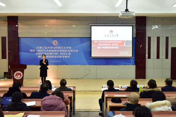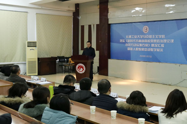 本网讯(通讯员王权)1月7日,bat365在线中国官网登录入口在综合楼三楼报告厅举行落实《新时代吉林省高校思想政治理论课创优行动实施方案》情况汇报暨新入职教师培训教学展示活动。校党委书记王忠,党委副书记李雁冰,党委常委、宣传部部长、教师工作部部长王鸣晖,人事与人才工作处、教师教学发展中心、教学质量监控与评价中心等部门负责人出席活动。bat365在线中国官网登录入口党政班子成员、全体思政课专兼职教师、硕士研究生参加了活动。