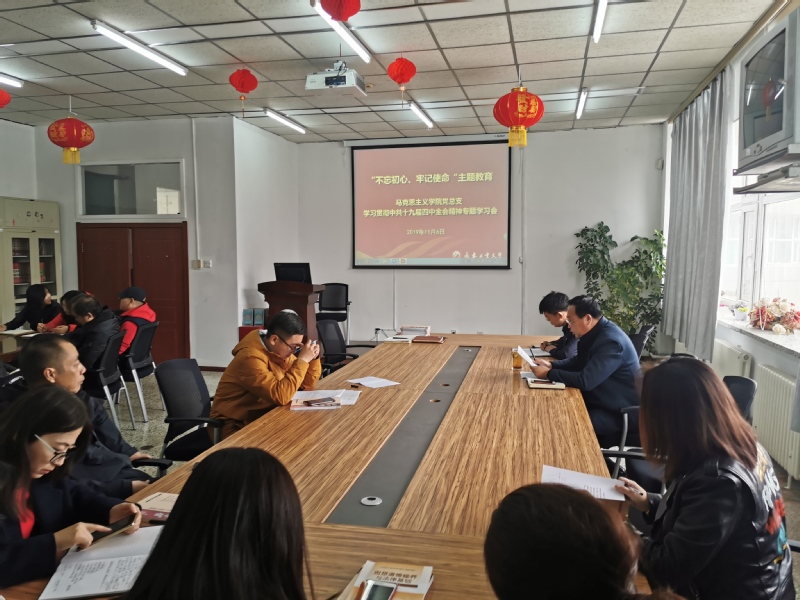 本网讯(通讯员宋海娇)11月6日,bat365在线中国官网登录入口党总支在学院资料室开展“不忘初心,牢记使命”主题教育,专题学习党的十九届四中全会精神。会议由党总支书记朱兴国主持,全院教师参加学习。