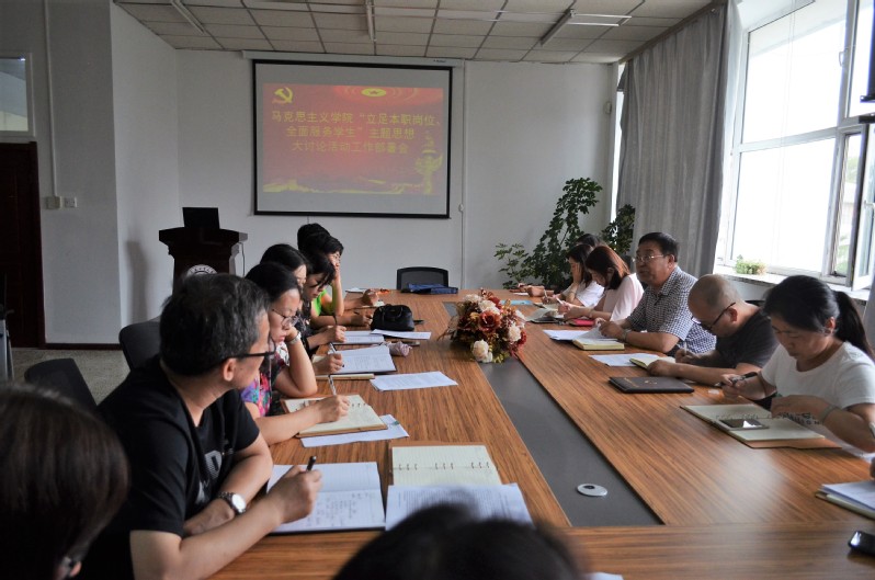 会上,朱兴国传达了学校“立足本职本岗、全面服务学生”主题思想大讨论工作会议精神,宣读了学校《关于开展“立足本职本岗、全面服务学生”主题思想大讨论活动的通知》,并就贯彻好、落实好通知精神,结合学院中心工作和教师岗位职责实际做了工作部署和动员。为扎实开展好大讨论活动,学院成立了由党总支书记、院长任组长的领导小组;制定了活动开展的路线图和时间表;明确了工作任务和具体要求,以确保大讨论活动落地生根,收到实效。朱兴国强调,全院教师要正确认识开展“立足本职本岗、全面服务学生”主题思想大讨论活动的重要性和必要性,并要求全院教师在工作中要牢固树立“以生为本”的工作理念,在提高教学技能、做好本职工作的基础上,密切联系学生,倾听学生呼声,进一步增强为学生服务的意识,提升为学生服务的本领和能力,全心全意为学生服务,实现好、维护好、发展好学生的根本利益。