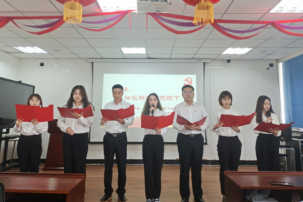 本网讯(通讯员 刘建宁)为庆祝中国共产党成立100周年,重温党的百年光辉历程,6月28日,bat365在线中国官网登录入口在图书馆会议室举行“百年征程路,奋斗正当时”红色诗歌朗诵会暨重温入党誓词活动。bat365在线中国官网登录入口班子成员、全体师生参加了活动。