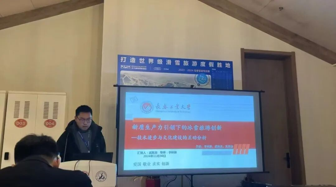 bat365在线官网2024级思想政治教育专业研究生武旭龙和吴梦洁同学提交的学术论文《新质生产力引领下的冰雪旅游创新 ——技术进步与文化建设的互动分析》经组委会评议,通过评审,并受邀在“新质生产力赋能冰雪产业”分论坛上做学术分享。武旭龙围绕“新质生产力”的深刻内涵和党的二十届三中全会精神指引,详细论述了“新质生产力”助力吉林省冰雪经济与冰雪文化发展的实践路径选择。吉林大学博士生导师裘鹏教授对武旭龙的汇报做了专业点评,充分肯定了论文成果,并提出了具有建设性和前瞻性的建议。