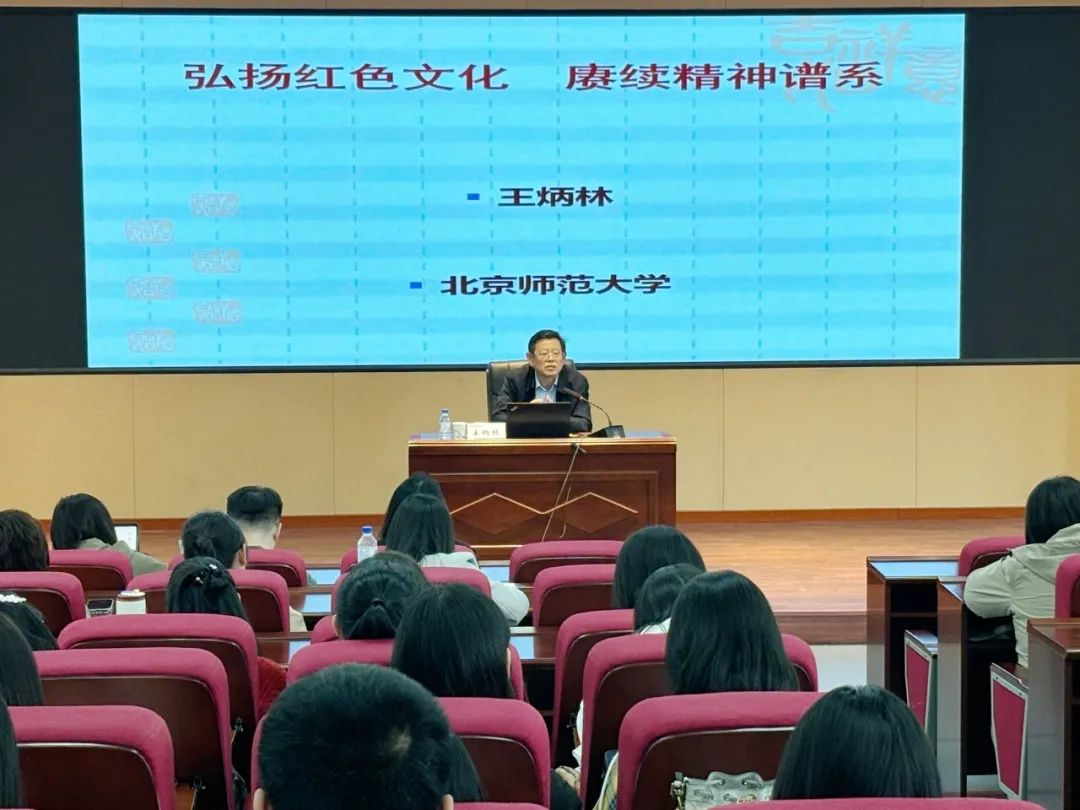 王炳林教授结合大量的党史案例,系统讲述了“红色文化的概念解析”“伟大建党精神是中国共产党精神之源”“中国共产党人精神谱系的核心要义和基本特征”“弘扬中国共产党人的精神谱系”等四大版块内容。王教授生动分享了自己多年理论研究和教育实践的宝贵经验,以宏大的历史视角梳理了精神谱系的发展脉络,以深刻的理论内涵阐释了伟大建党精神的时代价值,高屋建瓴、旁征博引、妙语连珠,为师生呈现了一场思想深刻、案例鲜活、妙趣横生的学术盛宴。