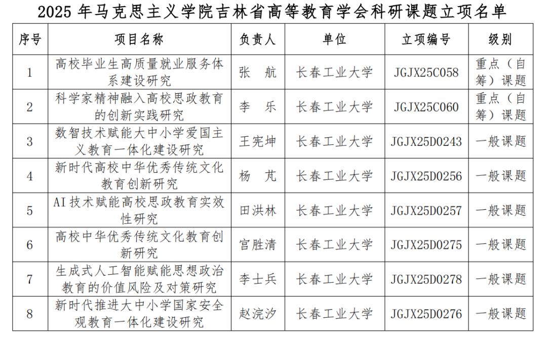 在2025年吉林省高教学会课题申报工作中,bat365在线官网学生取得了显著突破:全院共有20名学生参与申报,其中8项课题成功通过评审!