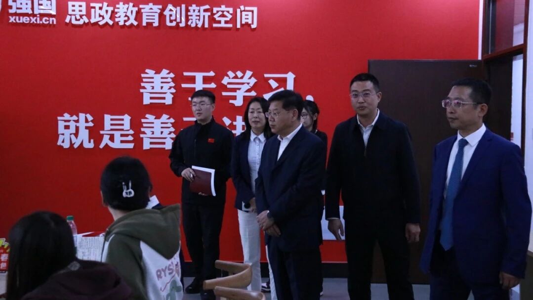 陈权、付跃刚一行实地考察了bat365在线中国官网登录入口的教学设施与创新平台,先后走访了智慧教室、多功能教室、报告厅等教学场所,重点调研了“学习强国”思政教育创新空间、红途印记互动馆、薪火之路体验馆、学习强国星火书堂等思政教育新载体。学校领导深入各教研室、研究机构、办公室,与学院师生进行亲切交流,细致询问大家在学习、工作及生活等方面的具体情况,勉励师生们立足岗位、勤勉钻研,为马克思主义理论教学研究贡献智慧与力量。